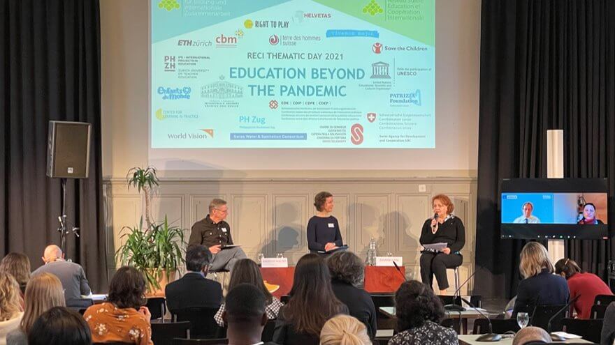 The event began with a panel discussion with four experts. First, Zamira Gijini, Director-General for Policies and Development of Education and Sports at Albanian Ministry of Education and Sports, Andreas Walter, Co-President of the Swiss Conference of Compulsory Education Authorities, Sobhi Tawil, Director of the Future of Learning and Innovation Team at UNESCO, and Sabina Handschin, Head of Education and Senior Education Policy Advisor, Swiss Agency for Development and Cooperation SDC.