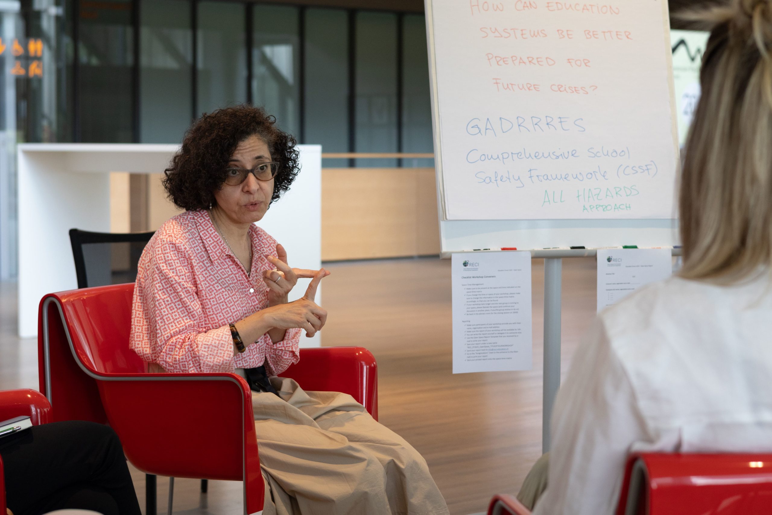 - Corinne Duriaux (Programme Manager for Education in Emergencies at the Swiss Development Cooperation) stressed the importance of the humanitarian, development, peace nexus, warning that education in emergencies is at risk of being deprioritised in global funding despite its central role in resilience and social cohesion.