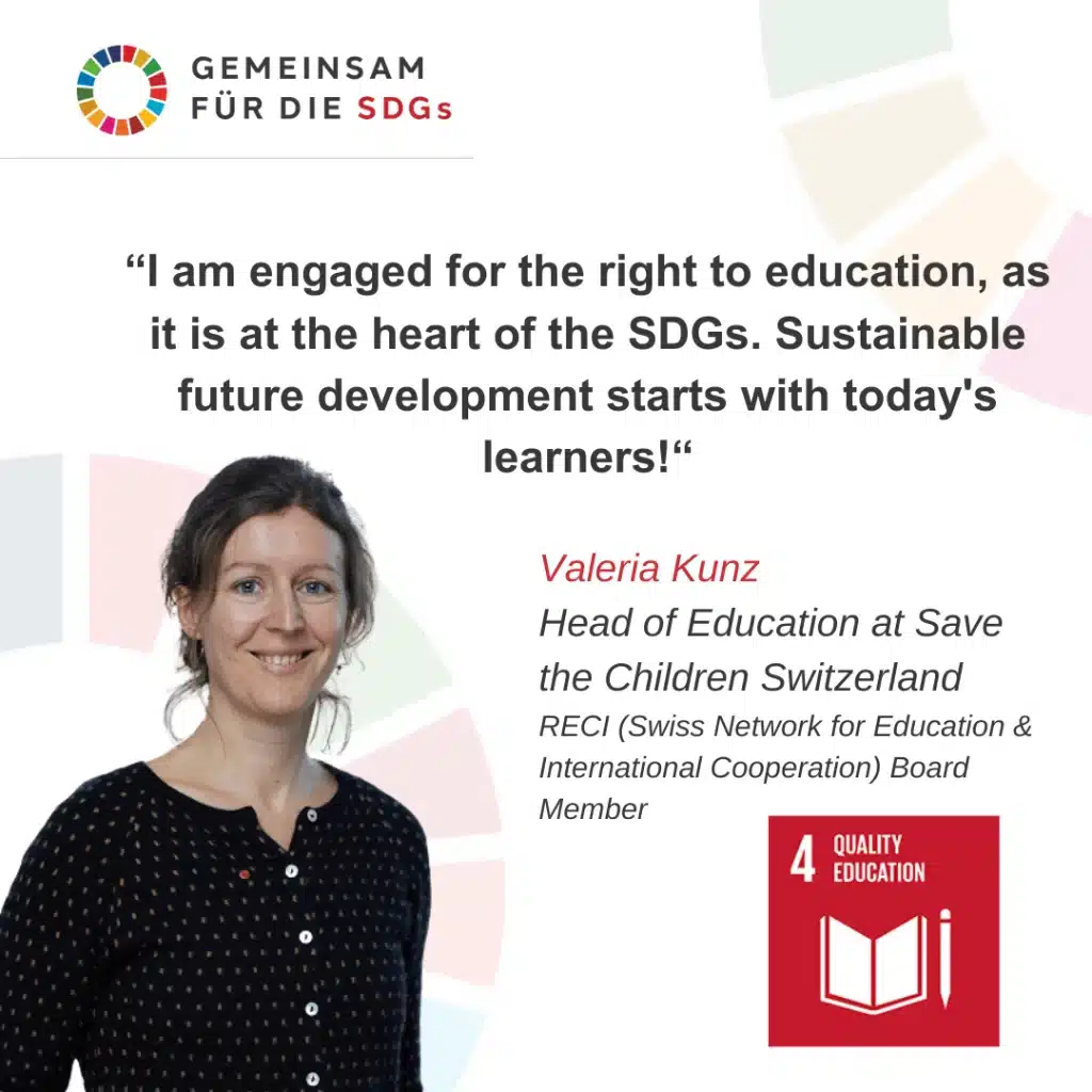 These goals are not only global aspirations but must also be translated into concrete actions at the local and national levels. The SDG Flag Day provided an opportunity to address the current challenges Switzerland faces in its pursuit of sustainable development worldwide. The campaign highlights the importance of education as a key catalyst for achieving the other SDGs, particularly in the fight against poverty and the promotion of equal opportunities.
